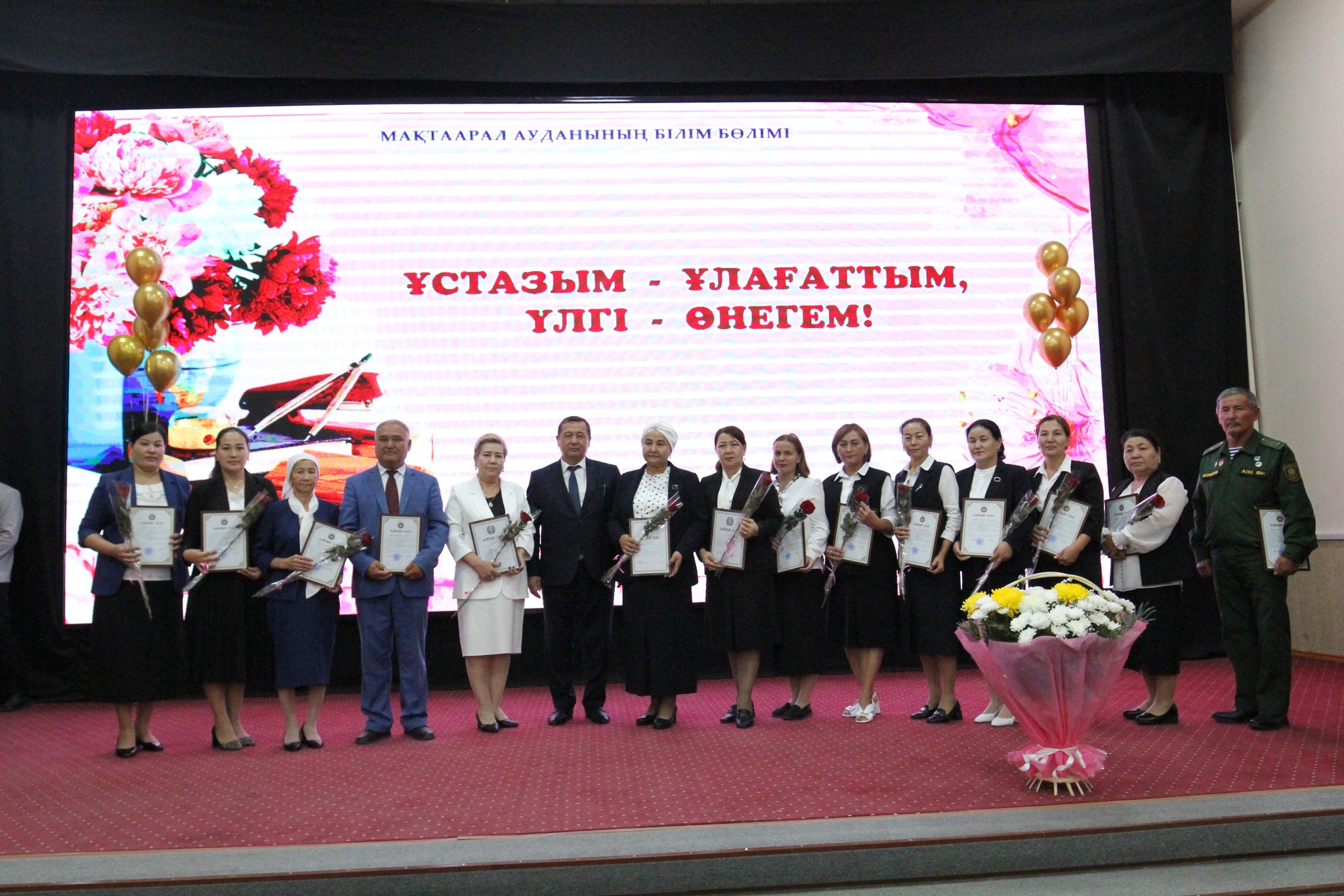 Білім ордасы – мектеп жас ұрпақты тәрбиелейтін киелі де қасиетті мекен. Ал, сол мектептің негізгі тірегі – білімді де, білікті ұстаз. Заман талабына сай әр баланың қабілетіне қарай дарындылығын дамыту, дүбірлі білім жарыстарында жүзден жүйрік, мыңнан тұлпар шәкірт шығару — Сіздердің ерен еңбектеріңіздің жемісі.