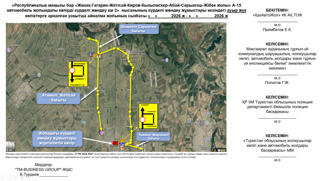 Жолдың жабылу мерзімі: 2026 жылдың 30 сәуірі мен қыркүйек айлары.